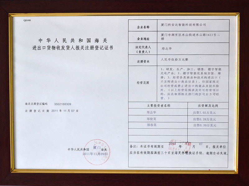 廈門科安達智能科技有限公司,是一家擁有完全自主開發(fā)能力和生產能力的知名高新技術企業。“KAD”是科安達公司在國內注冊的全球性品牌,公司已經通過ISO9001:2008國際質量體系認證和3C等強制性認證,并成為國內外很多知名安防產品的核心合作伙伴 詳情>>